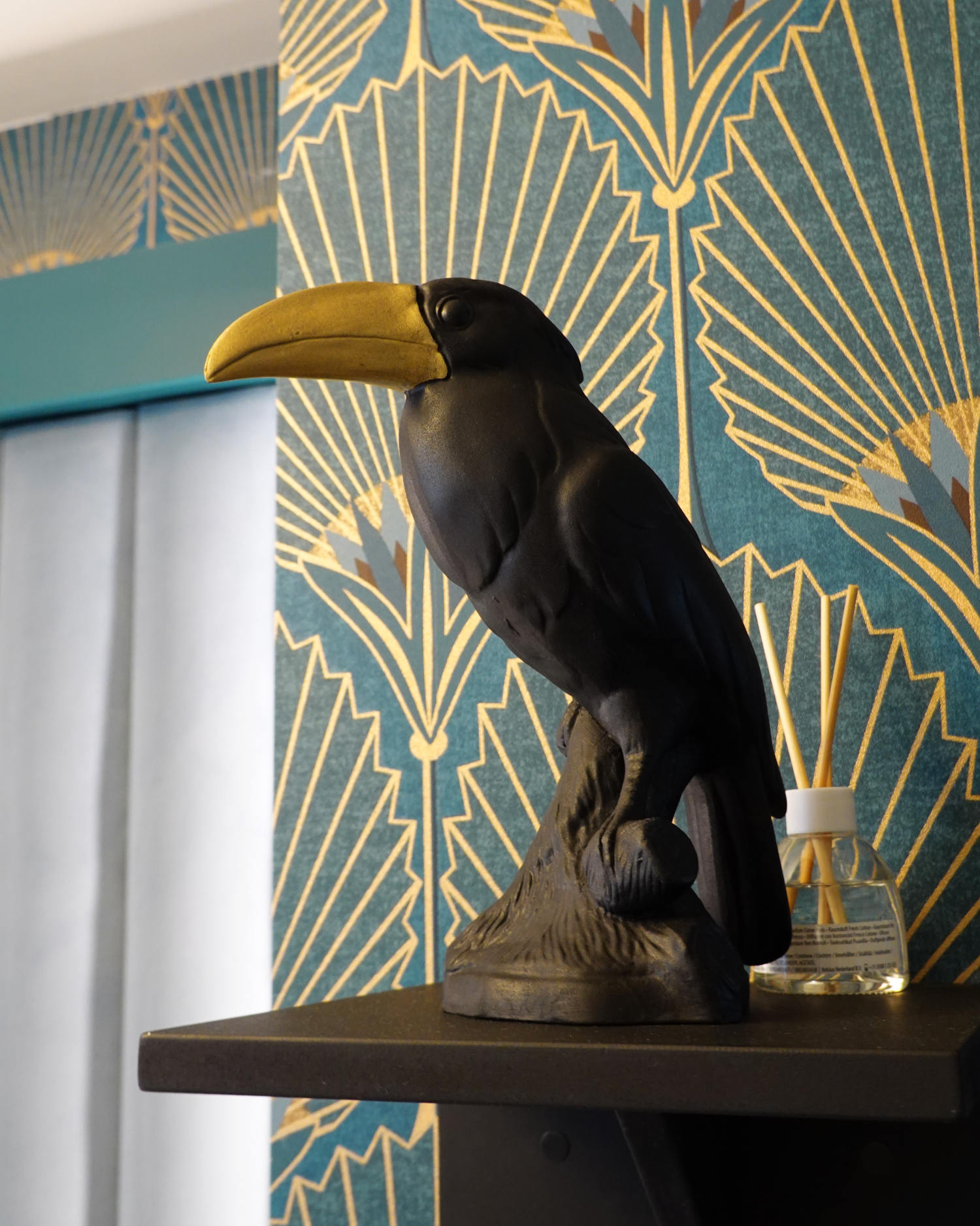 Voor ik binnenstap, lees ik me even in. Want naar het schijnt zou alles hier linken aan Adrien de Gerlache. De Hasselaar vertrok in 1897 met zijn schip Belgica richting de Zuidpool en raakte vast in het ijs. Een jaar lang zaten ze daar, letterlijk bevroren in de tijd. Dankzij pinguïnvlees overleefden ze de barre winter. Een ding is zeker, pinguïnvlees ga ik alvast niet eten vanavond maar wel benieuwd naar het avontuur dat op me afkomt. De details zitten alvast goed. Bébé, Gerlache’s favoriete pinguïn verwelkomt me in een goudkleurig kostuum.